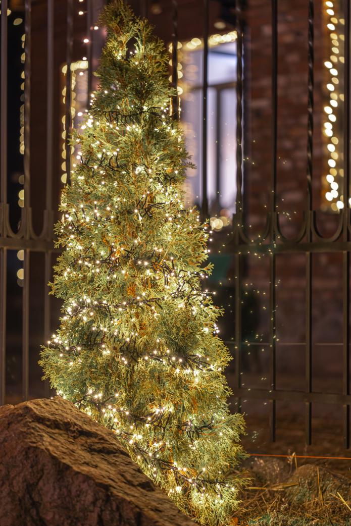 Una tendencia fuerte en 2025: decorar ventanas, balcones, jardines o entradas con guirnaldas LED, cascadas de luz o cortinas luminosas.