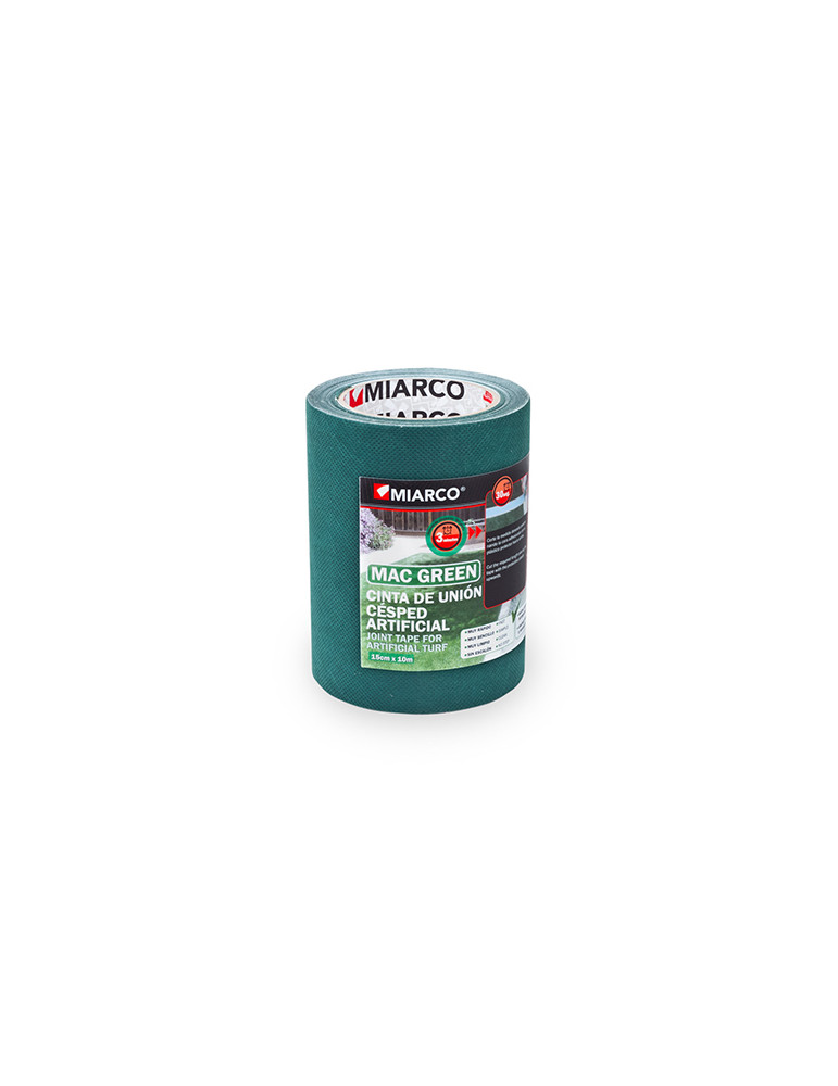 Cinta adhesiva de color verde a una cara para la unión de las piezas en la instalación y montaje del césped artificial. 150 mm x 25 m.