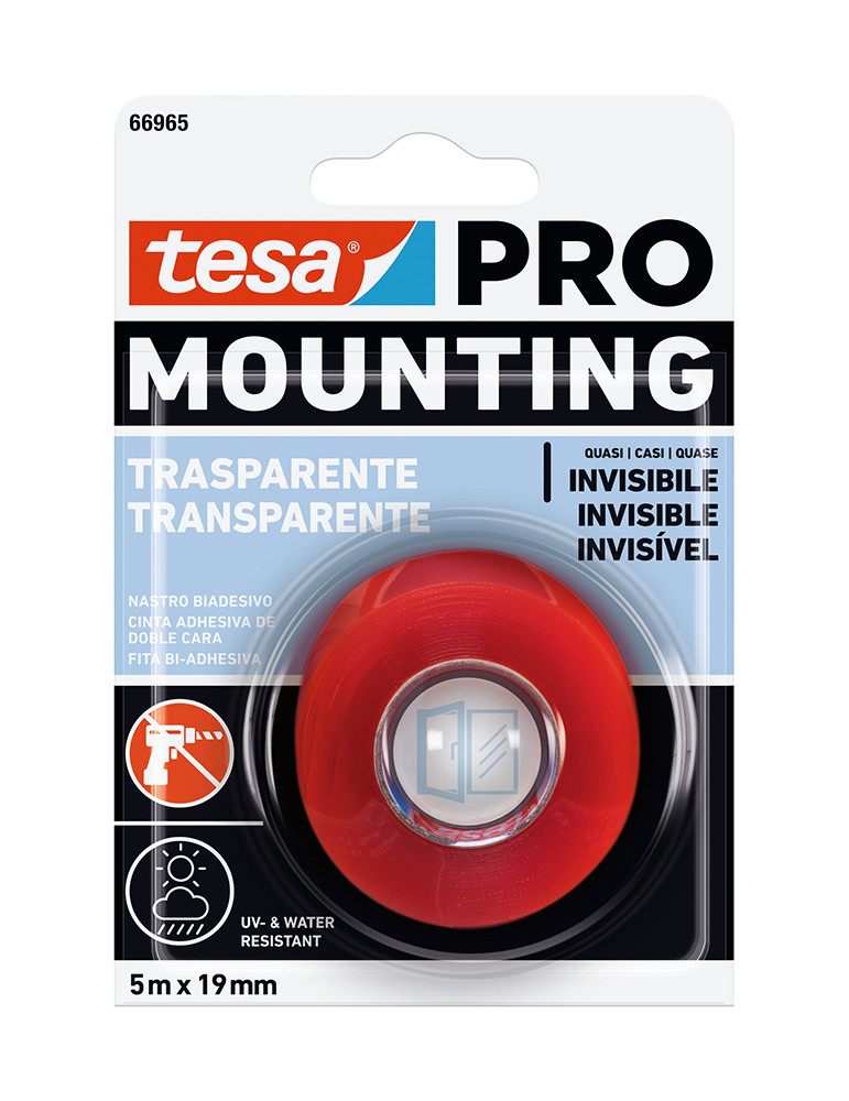 Transparente. Para fijar materiales transparentes o translúcidos. Apropiada para el uso en exteriores.