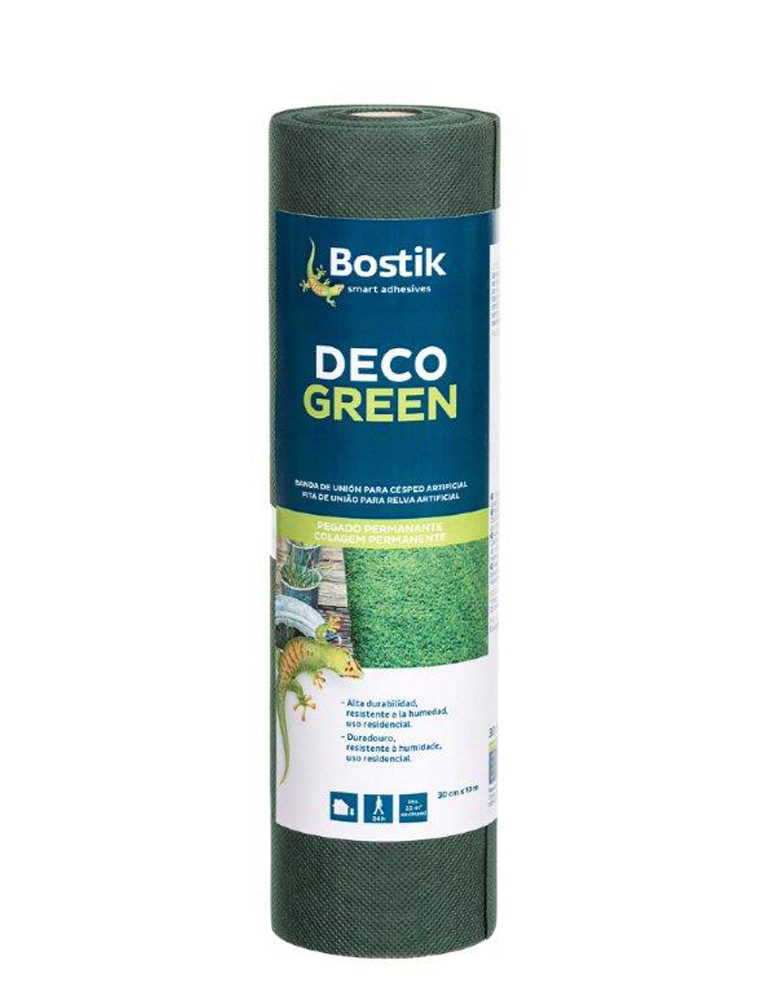 BANDA ADHESIVA PARA CÉSPED ARTIFICIAL DECO GREEN Zona de pegado premarcada. Verde. 10 m x 30 cm.