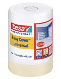 Cubierta protectora de alta calidad para labores de pintura que viene con una cinta adhesiva protectora integrada para una fácil aplicación. Solución 2 en 1 para el enmascarado de grandes áreas en el interior hasta 7 dias. 33 m x 550 mm.