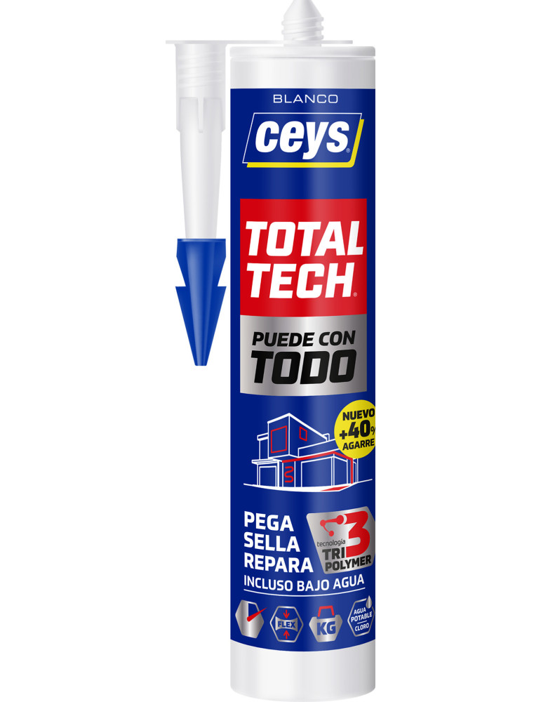 TOTAL TECH CEYS Pega, sella y repara. Resiste las condiciones más duras, agua, humedad, rayos UV. Cartucho 290 ml.