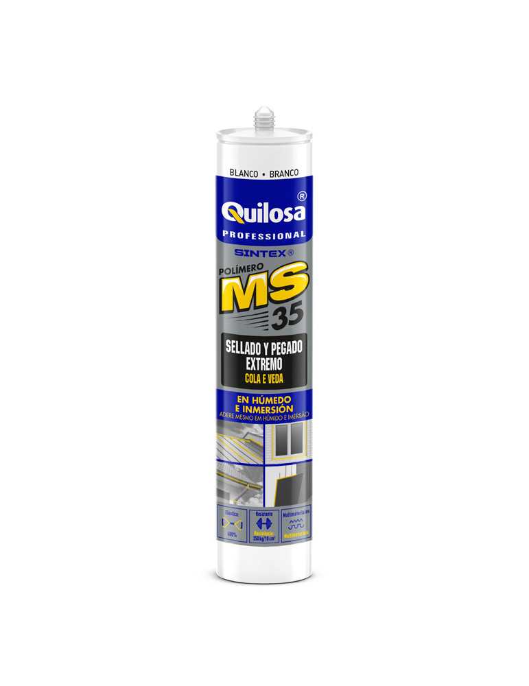 Pegado en húmedo, buena adherencia sobre la mayoría de las superficies. Pintable. Resistencia UV. Cartucho 300 ml. Blanco, gris, marrón o negro.