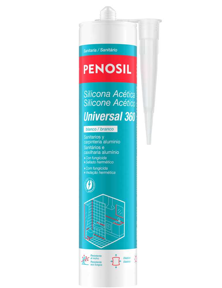 Silicona acética sanitaria antimoho, que no ennegrece, y elástica. Resistente a los UV
