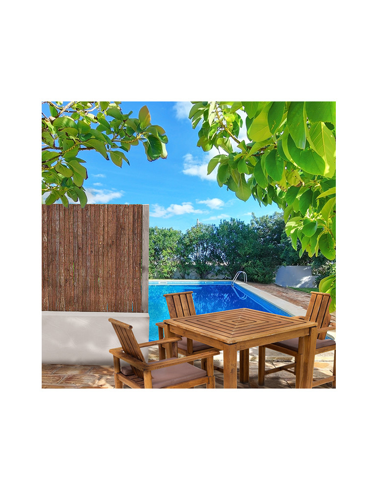 1,5 x 3 m Fabricada con cortezas de pino unidas con alambre plastificado que ofrece una buena ocultación y permite resguardarse de las miradas indiscretas brindando un estilo muy natural. Producto natural. Fuerte rigidez y resistencia.