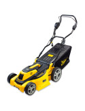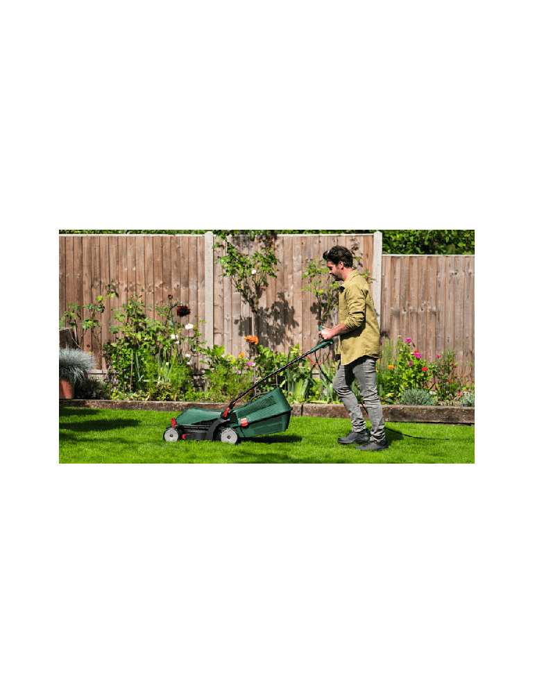 1300W. Ancho de corte: 34 cm. Altura de corte ajustable: 25-70 mm. Capacidad de bolsa: 40L. Mango plegable para fácil almacenamiento. Motor eficiente en el consumo energético. Cuchillas para corte de bordes. Peso ligero y diseño compacto.