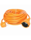 PROLONGADOR MANGUERA NARANJA con enchufe schuko. Material caucho y cobre. 3 x 1,5 mm2. Potencia Máxima: 3500W. 16A. 250V. Ideal para cortacésped y herramientas eléctricas de jardín, iluminación balcón-terraza. Protección para niños. Color fácil visibilidad. 25 m.