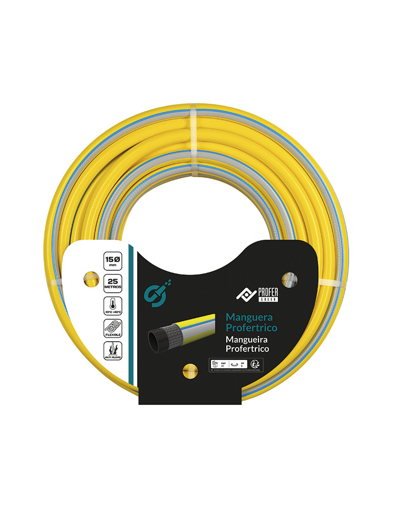 MANGUERA pvc PROFERTRICO Manguera antitorsión de 4 capas fabricada por extrusión de compuestos vinílicos y reforzada por una malla tricotada de poliéster. Antialgas. 25 m 15 mm