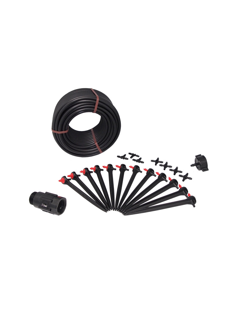 Kit de riego GOTA A GOTA para Huerto Urbano Permite regar en una misma línea cultivos con diferentes necesidades de riego. Toma 4 mm.