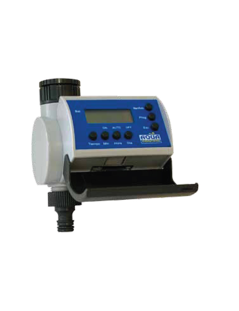 Automatiza el riego según necesidades. Hasta 8 riegos/arranques por día. Funciona con 1 pila alcalina de 9V. (no incluida). Con filtro metálico y 2 roscas para grifo de 3/4” y 1”.