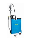 Depósito resistente y ligero de polipropileno, indicador translúcido de nivel lateral, maneta de aluminio, lanza de fibra de vidrio. 16 l