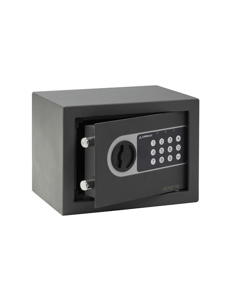CAJA FUERTE DE SOBREPONER PREMIER ARREGUI electrónica pomo. Frente de acero de 3 mm. 2 bulones de 16 mm de diámetro Dispone de llave de emergencia tubular más segura. Dispone de botón de programación interior. Dimensiones: 230 x 170 x 170 mm.