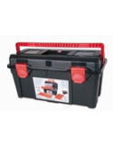 Nº 35. Medidas 580 x 285 x 290 mm. Contiene 2 bandejas y 1 estuche. Material PP. Color caja negro, bandeja y estuche rojos.