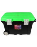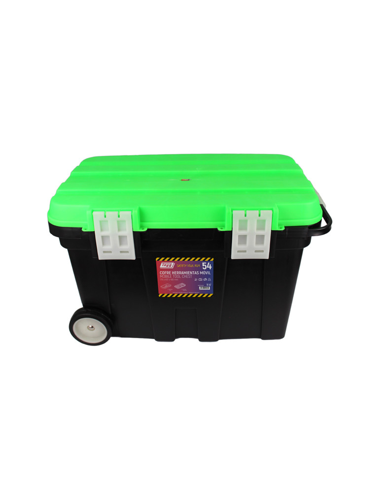 Cofre de herramientas profesional con ruedas. Cierres y asa en aluminio, ambos luminiscentes. Soporta hasta 120 kg, muy resistente. Contiene 2 bandejas. Medidas: 775 x 472 x 493 mm.