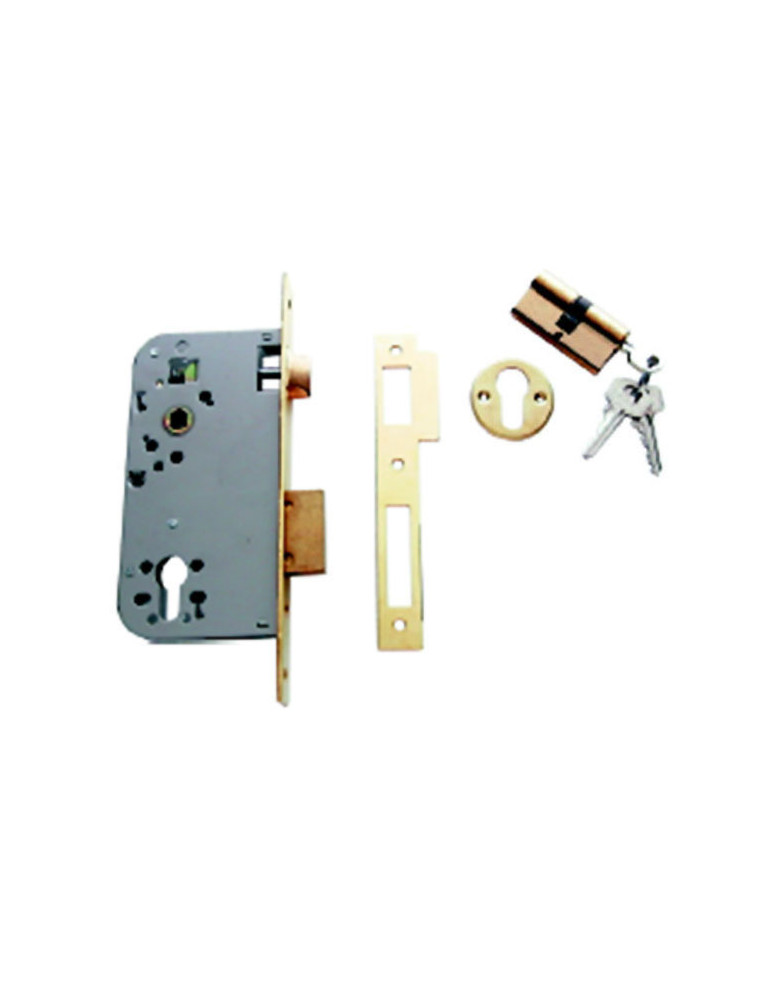 CERRADURA DE EMBUTIR PARA PUERTAS DE MADERA tesa Cilindro europerfil con 3 llaves. 60 mm. Frente niquelado.