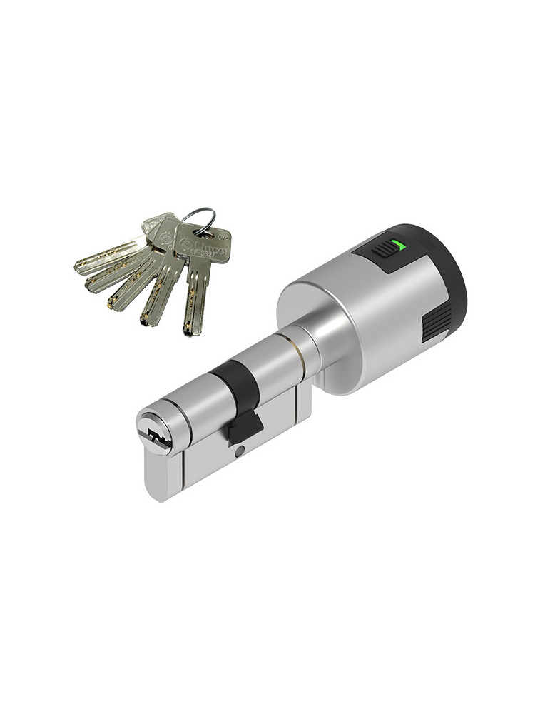 CILINDRO “CPLUS ALARM” 70MM (40+30) NIQUEL MATE Alarma de 100 dB que detecta: Vibraciones indeseadas en la puerta (taladro, rotura, etc.) Introducción de cualquier elemento en el rotor (ganzúa, llaves bumping, etc.) Carga de la alarma con micro USB estándar.