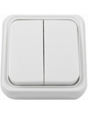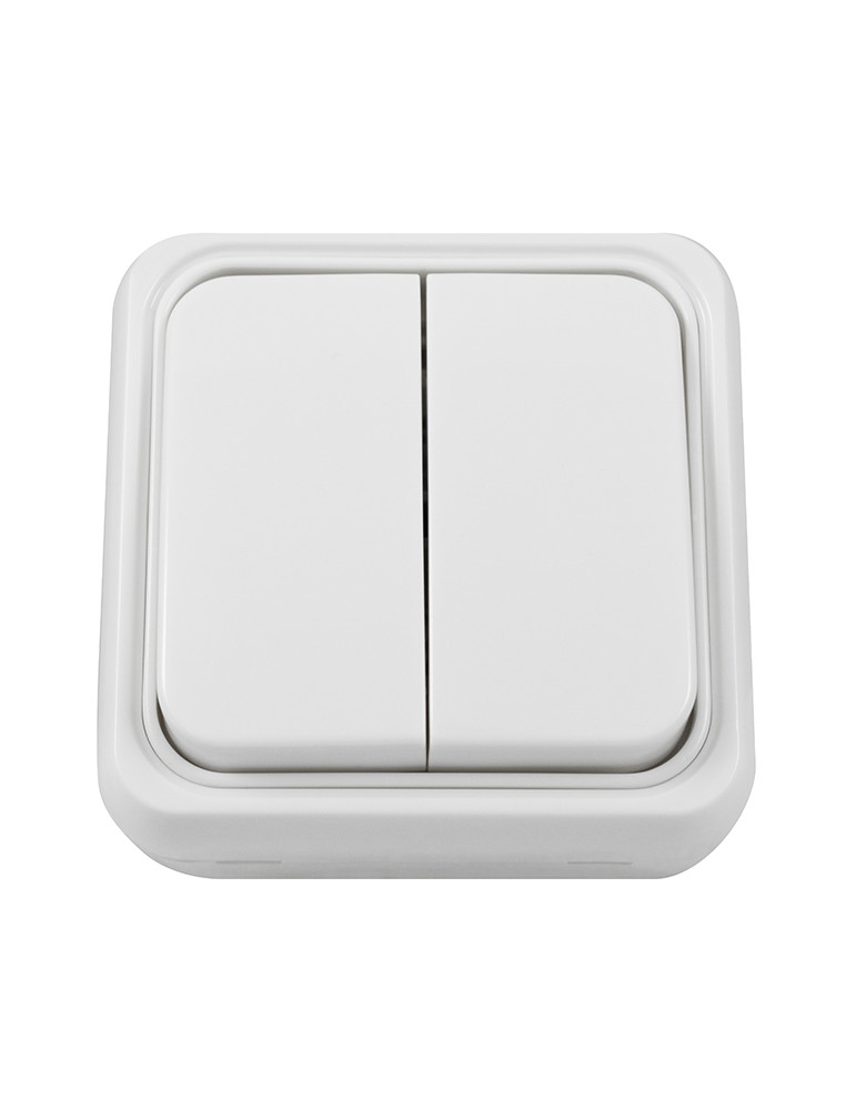 10A, 250V. Interruptor unidireccional de dos grupos (1+1) y diseño compacto e instalacion de superficie para controlar dos luces desde un único punto. Accionador basculante. Montaje rápido y seguro. Sistema de fijacion en superficie con tornillos a l