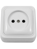 10A, 250V. Base de diseño compacto e instalacion en superficie. Los contactos disponen de proteccion infantil. Sistema de fijación con tornillos a la pared. Base de enchufe de superficie bipolar. Uso interior