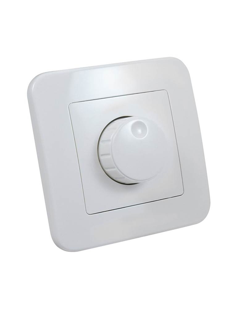 Permite regular la intensidad de la iluminación. Se instala junto al interruptor. 10A, 250V/50-60Hz. Carga max 400w (incandescente), 300w (led)