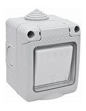 INTERRUPTOR SUPERFICIE ESTANCO IP55 10A, 250V, 50Hz. Compuesto por una tapa plastica frontal flexible, aislante y transparente que facilita la manipulación del mecanismo.