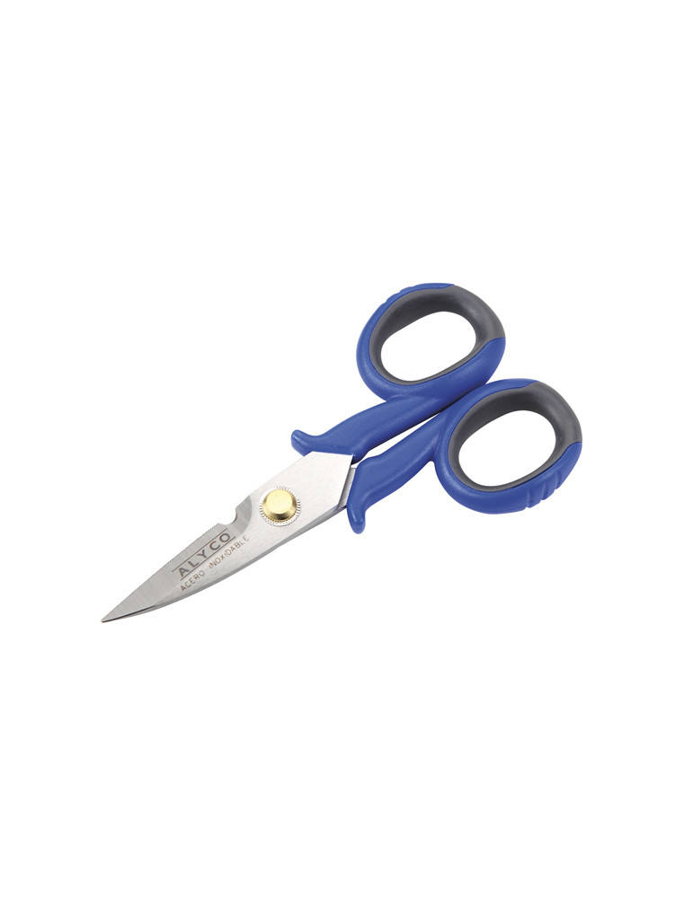 TIJERA ELECTRICISTA MULTIUSOS ALYCO 145 mm. Filos de corte dentados, mangos ergonómicos en nylon gran resistencia y elastómero blando, muesca pelacables.