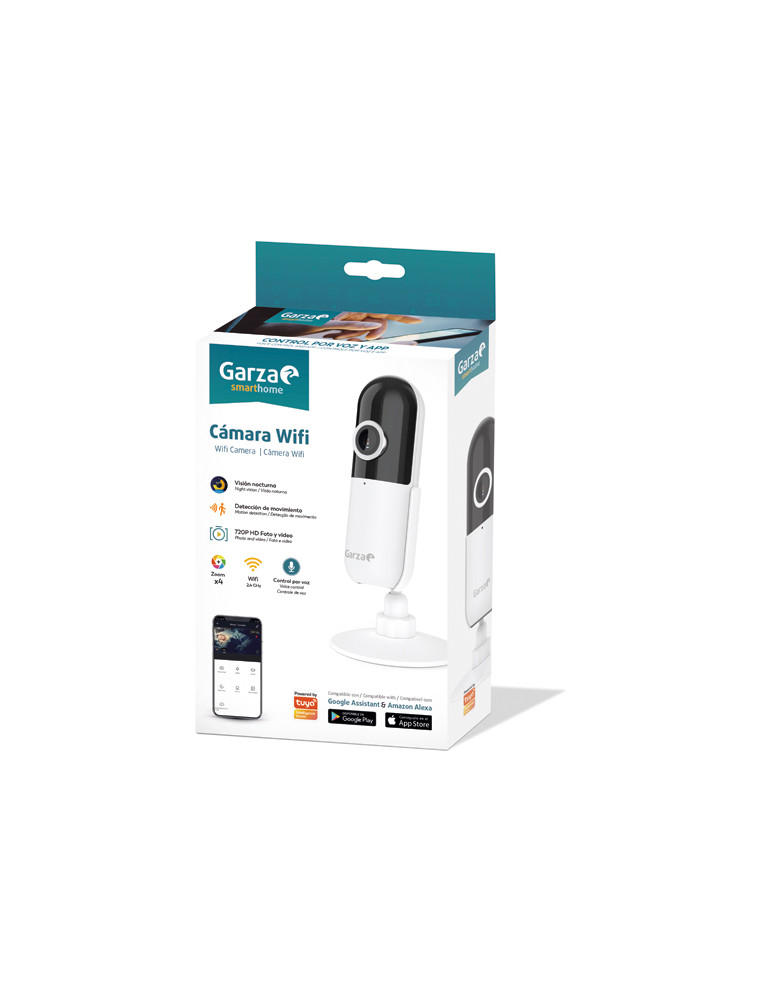 Cámara WiFi de interior fija. Reducido tamaño. Visión nocturna. Fotos y grabación de vídeo. Sensor de movimiento. Notificación a móvil. Compatible con Google Home y Amazon Alexa. 720 P. HD. Audio bidireccional. Angulo 75º