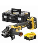 Mini-Amoladora a batería DCG405P2-QW dewalt 18 V. 125mm. con Freno, Embrague, Arranque Suave, Bloqueo y re-arranque con 2 baterías Li-Ion 5Ah, cargador y maletín TSTAK II