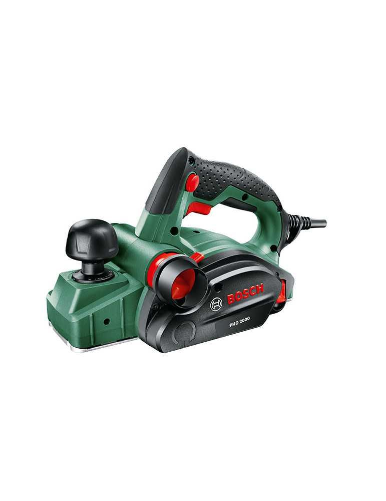 680 W. Sistema de cuchillas patentado Woodrazor. Botón de bloqueo izquierda/derecha. Cabezal de ajuste de profundidad. 0-2,0/8,0 MM Conexión para aspiración de polvo. Posición de apoyo. Softgrip. 3 ranuras en V. Protección de la base