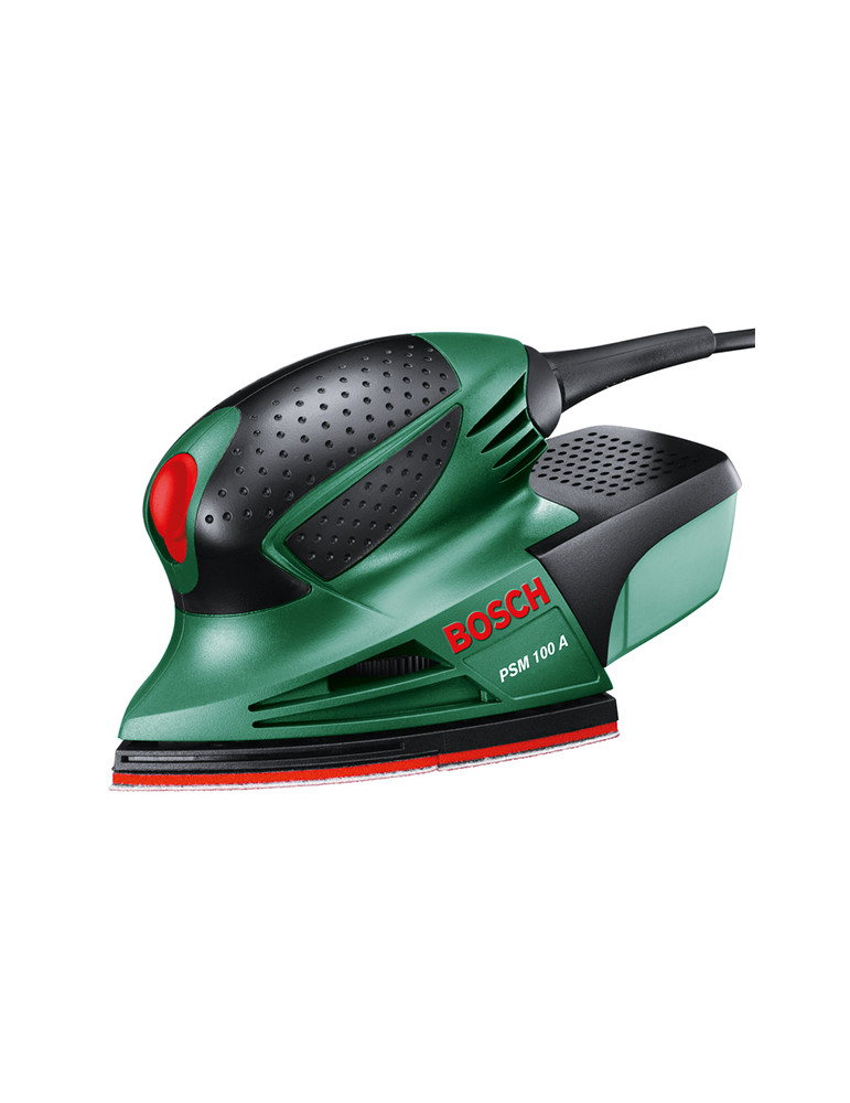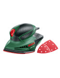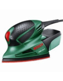 100 W. 13.000 rpm. Sistema Microfiltro; Depósito para polvo y sistema SDS para hoja de lija. 3 hojas de lija K 80, K 120, K 160. Maletín.