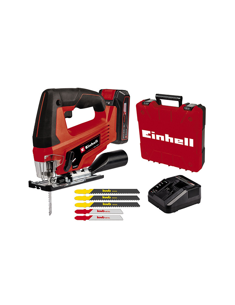 BATERIA DE 2,5 Ah + cargador Número revoluciones 2700 min ^ -1 Profundidad de corte en madera 70 mm Profundidad de corte en plástico 10 mm Profundidad de corte en acero 8 mm Max. cortes en bisel 45 ° Cambio de hoja de sierra sin herramientas INCLUYE
