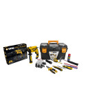 12 V, portabrocas 10 mm, 10 + 1 posiciones de par de apriete, 2 velocidades 0 - 350/1.350 rpm, par máximo 40 Nm, impactos 21.250 ipm. Incluye 1 batería USB 1,5 Ah de Litio y cable USB.