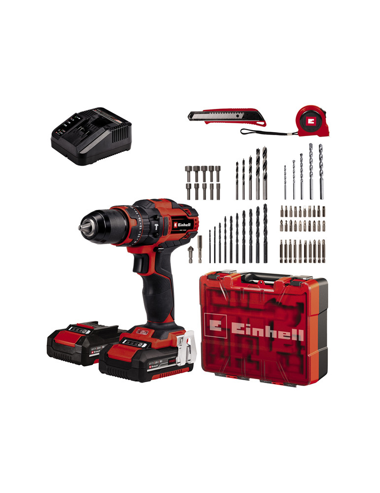 Incluye cargador + 2 baterías de 2,0 Ah Velocidad: 0-400 min-1 - 0-1.500 min-1 Fuerza: 40 Nm Portabrocas de 13 mm