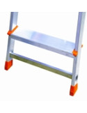 Con bandeja metálica, montantes de 50 x 20 delante y 50x20 detrás con peldaño extra en el montante trasero y peldaños de 13cm.Normativa: EN131/1/2. 5 peldaños