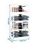 Con tornillos. Convertible en banco de trabajo. Pintada en epoxi poliéster blanco. 100 kg por estante. 5 baldas. (No incluye accesorios). 180 x 90 x 30 cm.