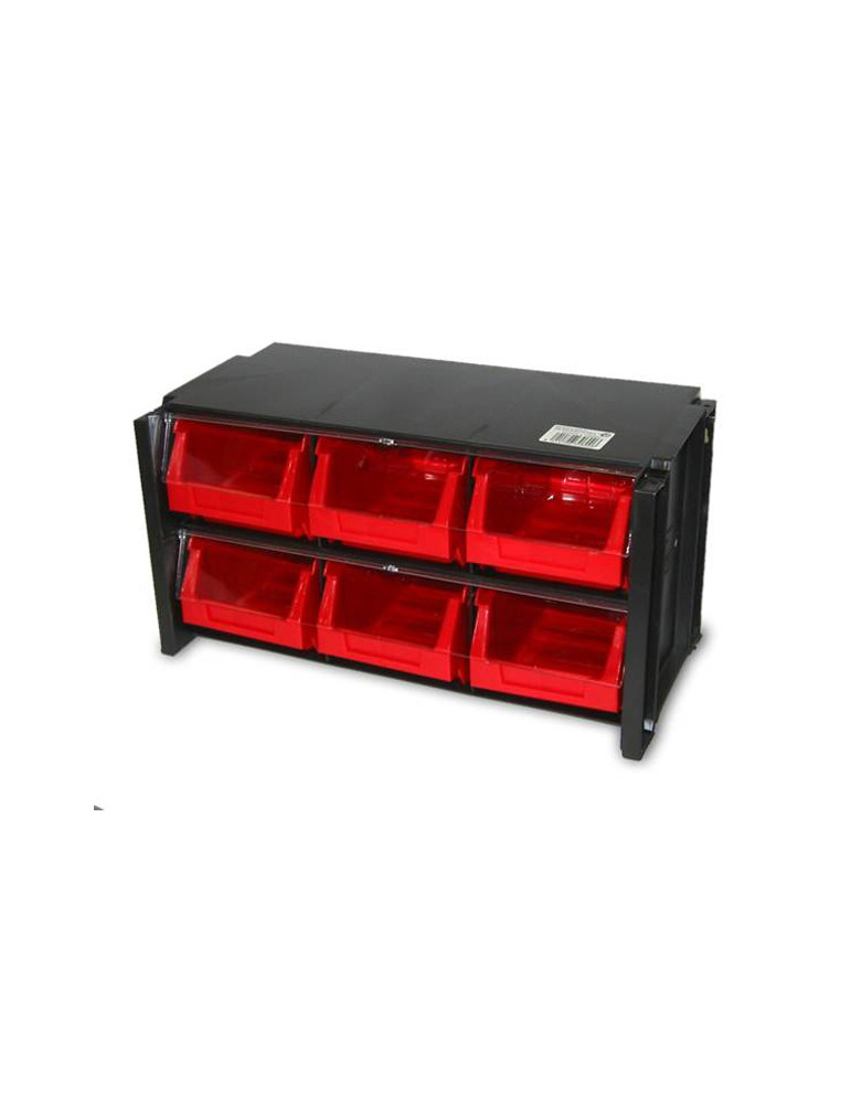 Material armazón PS, gavetas PP. Color armazón negro, gavetas rojas. 6 gavetas. 100 x 170 x 80 mm.