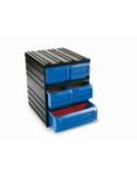 Medidas 245x291x321 mm. Contiene 4 cajones 291x116x95 mm + 1 cajón 291x232x95 mm y 15 separadores. Material armazón PS, cajones PP.