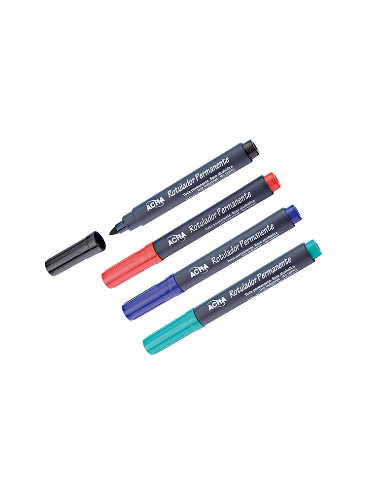 Fino. Punta redonda. Negro, rojo, azul o verde.