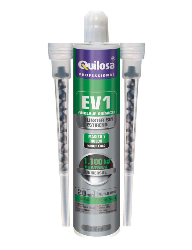 Anclaje químico en base a resina de poliéster, de dos componentes libre de estireno y curado rápido. Contiene 2 cánulas. Cartucho 300 ml.