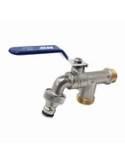 GRIFO JARDÍN CON DOS SALIDAS 1/2” X 3/4” X 3/4” 1/2” x 3/4” x 3/4”. Especial para programadores de riego y enchufe rápido, palanca metálica.