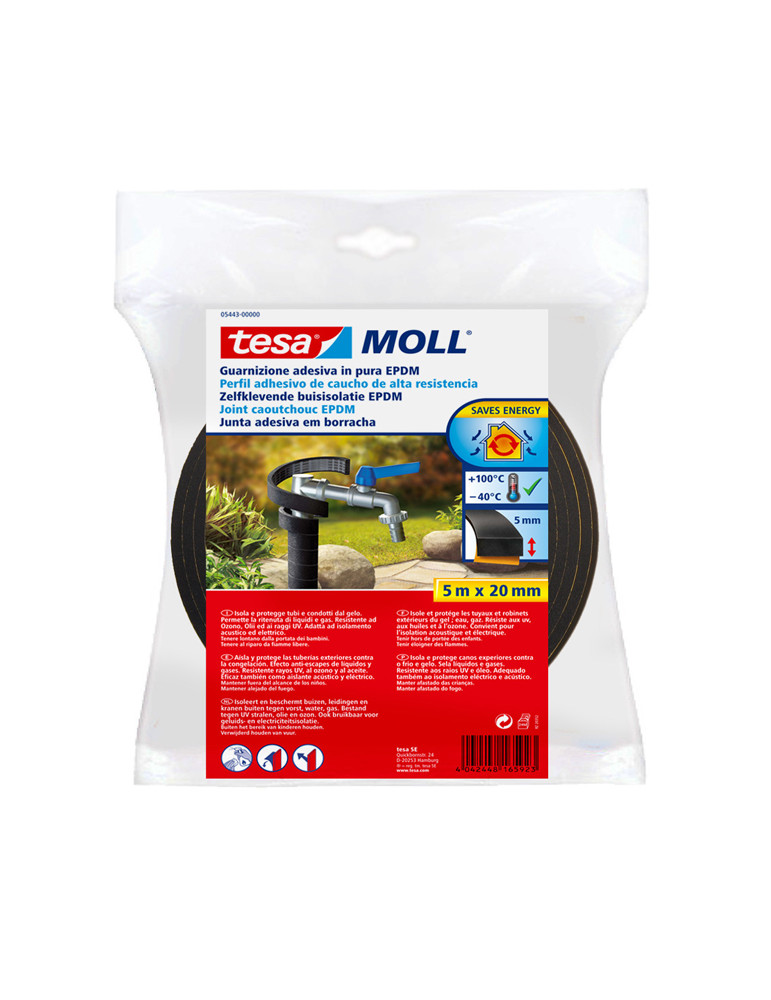 DE CAUCHO EPDM TESAMOLL Aisla y protege las tuberías exteriores contra la congelación. 5 m x 20 mm Negro