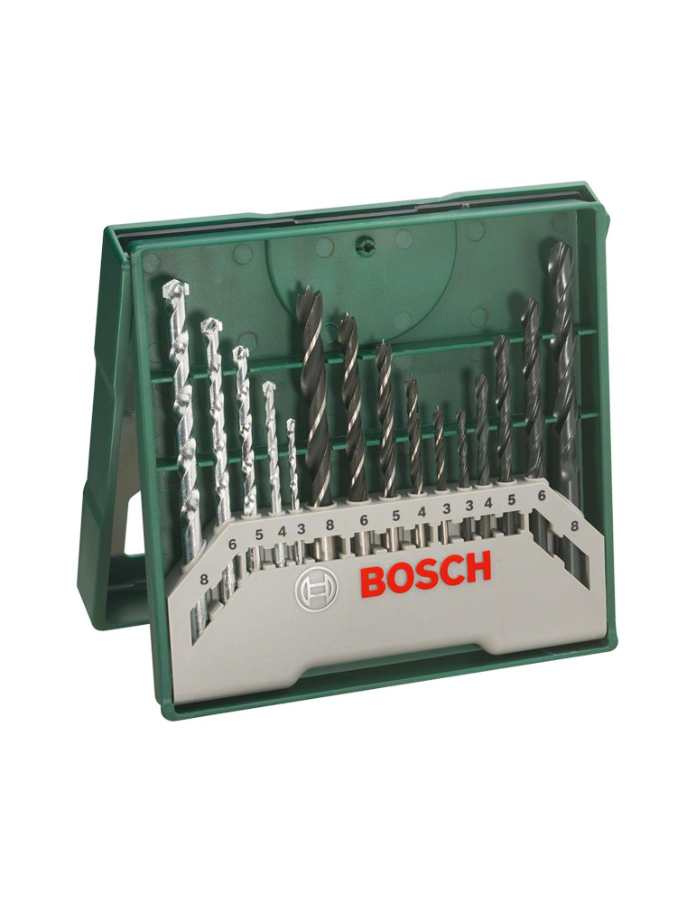 5 brocas para metal (3-8 mm), 5 brocas para piedra (3-8 mm), 5 brocas para madera (3-8 mm).