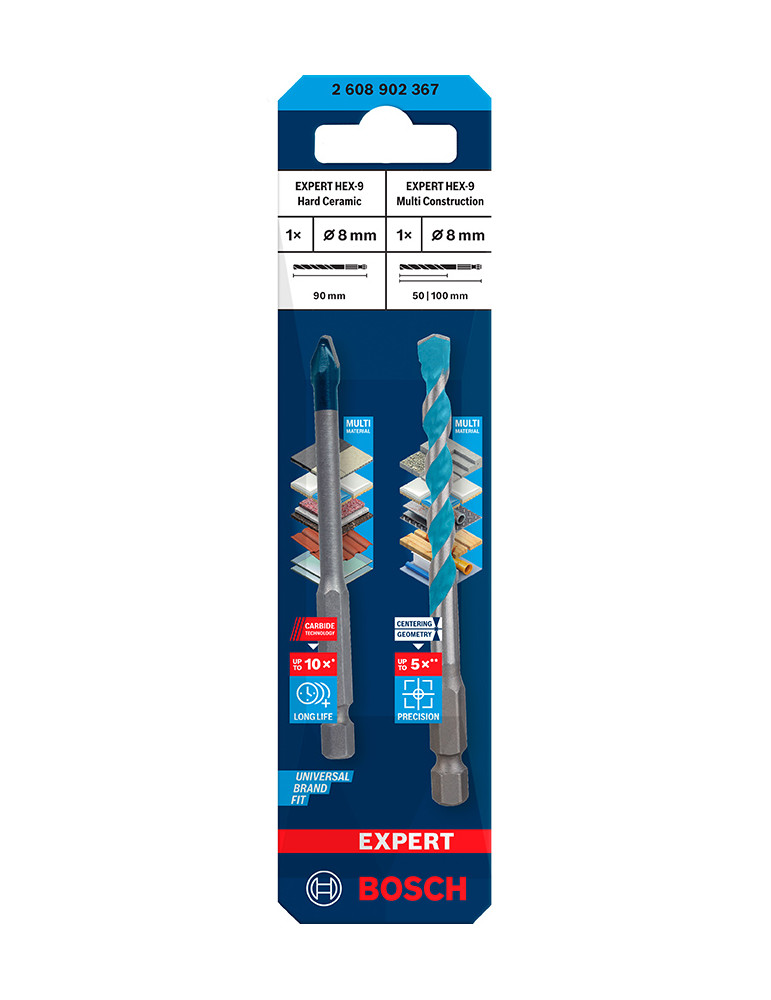 3 BROCAS EXPERT HEX-9 BOSCH Diámetro 8 mm.