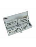ESTUCHE MACHOS Y COJINETES M3-12 (M3-4-5-6-8-10-12). Volvedor (25 x 9). Giramachos: nº1-1/2. Carraca nº 1.