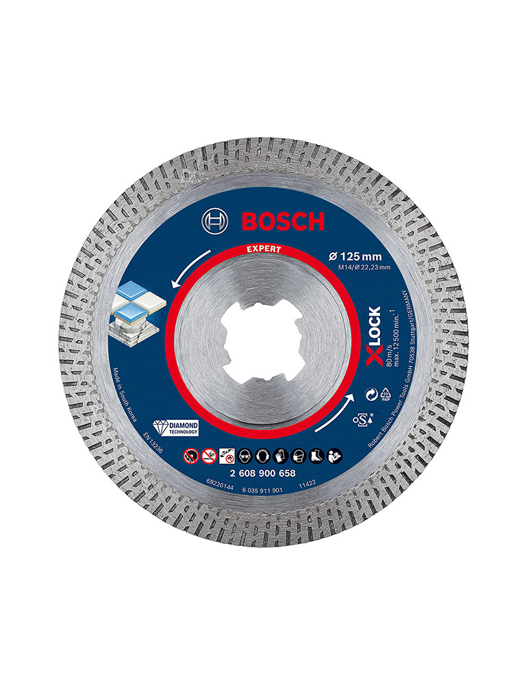 Disco de corte de diamante EXPERT HardCeramic X-LOCK de 115 x 22,23 x 1,4 x 10 mm Corte limpio y de alta calidad con la tecnología Bosch Diamond Technology.Banda continua.