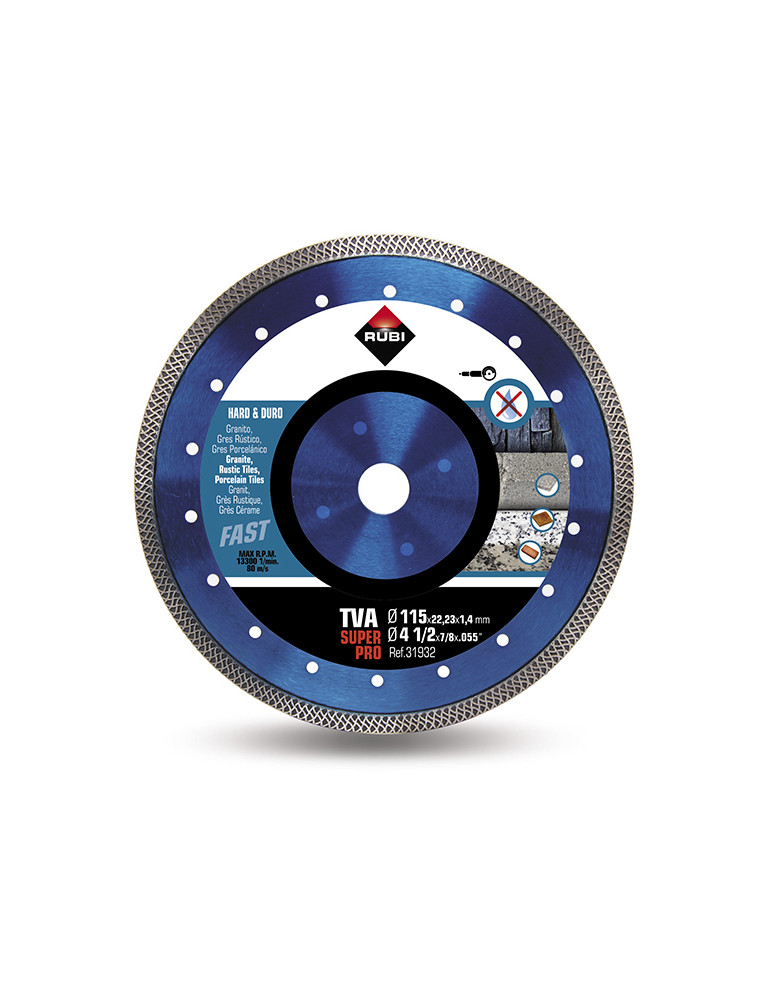 DISCO DIAMANTE TVA 115 SUPERPRO RUBI Para materiales duros, incluido el porcelánico. Banda Viper. Juego de 9 llaves HEX-PLUS largas y con bola de 1,5 a 10 mm en clip de goma con pestillo de apertura.