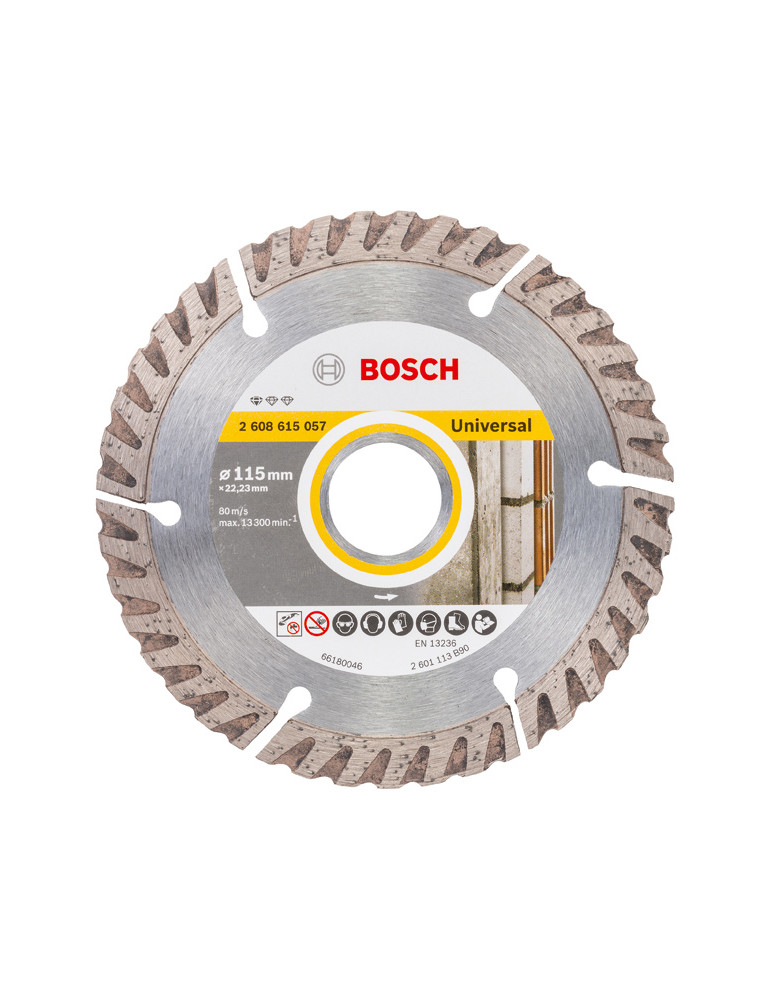 DISCO DE DIAMANTE STANDARD UNIVERSAL BOSCH 10 mm de pastilla de diamante para una elevada duración. 115 x 22,2 mm.