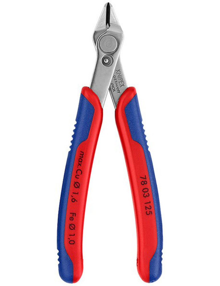 ALICATES PARA ELECTRÓNICA KNIPEX “SuPER KNIPS” Alicates de precisión para electrónica. Filos rectificados y muy afilados sin bisel. Con muelle y limitación de apertura. Longitud 125 mm. Tallas 8 - 10.