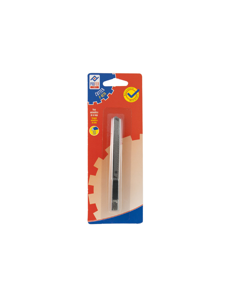 Cuchillo con empuñadura anatómica de material plástico. Hoja de 9mm. Desplazamiento automático de la cuchilla.