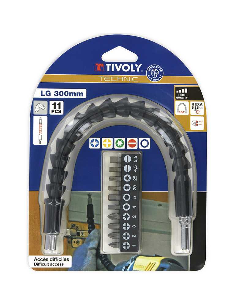 FLEXIBLE A 180º Long. 300mm + KIT DE 10 PUNTAS: PH, PZ, TX, PLANA Y HEXA
