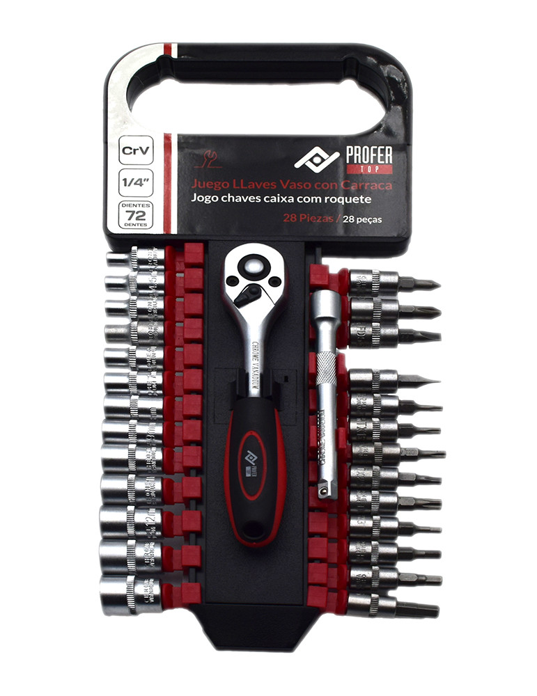 JUEGO LLAVES VASO + CARRACA 1/4’’ PROFER TOP 28 piezas.